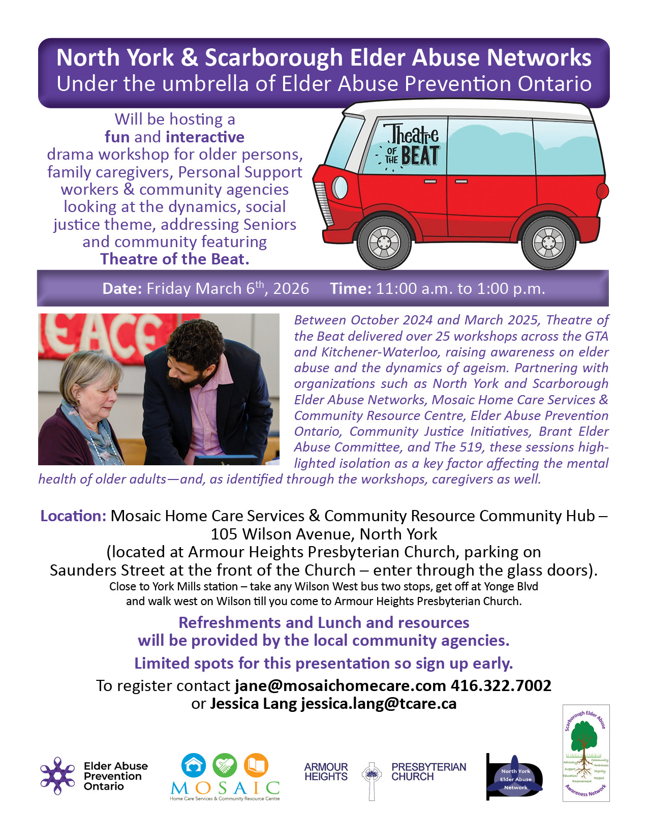 North York & Scarborough Elder Abuse Networks hosting Theatre of the Beat: an Interactive Drama Workshop.